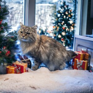 And the cat, she just purred, under the Christmas tree light,